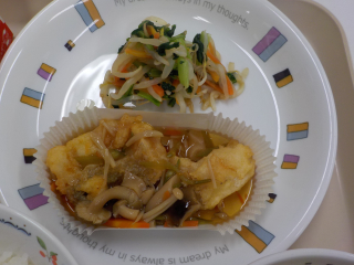 かぶの即席漬け。全体量が少なくて子供たちは配食が難しかったかもしれません。残菜が多いので少し加減をすると今度は配食に手間取ってしまいます。