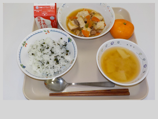 わかめご飯は人気のご飯です。3学期になって途端によく食べるようになっています。4月には、学年が上がるのですから当然です。立春を過ぎると草花が芽吹きだすように人間も自然界と一緒ぐんと大きくなります。伸びようとするときには、たんぱく質とカルシウムを十分に取らせてください。