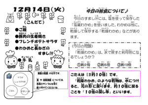 12月14日(火)の給食