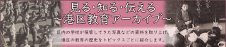 港区教育史の刊行に先立ち、編さん過程で発見された貴重な歴史資料や映像を広く皆さんに「見て」、「知って」いただき、区の教育史に興味をもっていただくため、「見る・知る・伝える ~港区教育アーカイブ~」を作成し、インターネット上で公開しています。